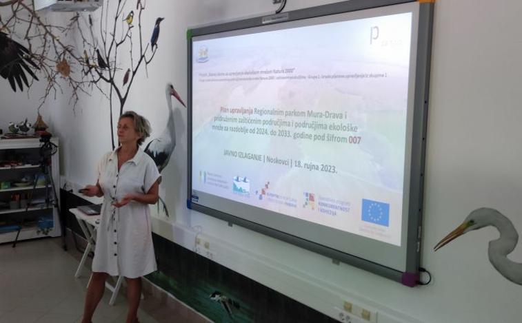 Danas, 18. rujna 2023. godine, u Posjetiteljskom centru Dravska priča, u okviru javnog uvida, koji je započeo 09. rujna i traje do 8. listopada 2023. godine, održano je javno izlaganje Prijedloga Plana upravljanja Regionalnim parkom Mura-Drava i pridruženim zaštićenim područjima i područjima ekološke mreže, za dio Plana upravljanja koji se odnosi na Virovitičko-podravsku županiju, izrađenog u sklopu projekta Razvoj okvira za upravljanje ekološkom mrežom Natura 2000.