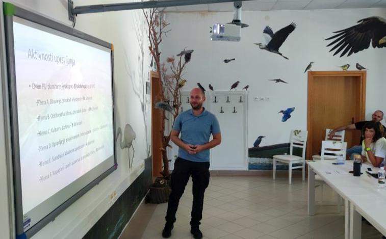 Nakon pozdravnih riječi, Prijedlog Plana upravljanja prezentirali su ravnateljica Javne ustanove za upravljanje zaštićenim dijelovima prirode i ekološkom mrežom Virovitičko-podravske županije, Tatjana Arnold Sabo, voditelj bio istraživačke stanice, Vladimir Juhaz i čuvar prirode, Vladimir Ajhler.