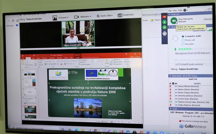 Ravnateljica Javne ustanove za upravljanje zaštićenim dijelovima prirode i ekološkom mrežom Virovitičko-podravske županije Tatjana Arnold Sabo, kao jedan od panelista, prezentirala je projekt Prekogranična suradnja na revitalizaciji kompleksa riječnih staništa u području Natura 2000, akronim projekta Old Drava, koji se provodio na području Virovitičko-podravske županije, a u kojem je kao partner sudjelovala Javna ustanova za upravljanje zaštićenim dijelovima prirode i ekološkom mrežom Virovitičko-podravske županije. Na završetku webinara predstavljen je i film o području provedbe i projektnim aktivnostima partnera realizacije projekta Old Drava.